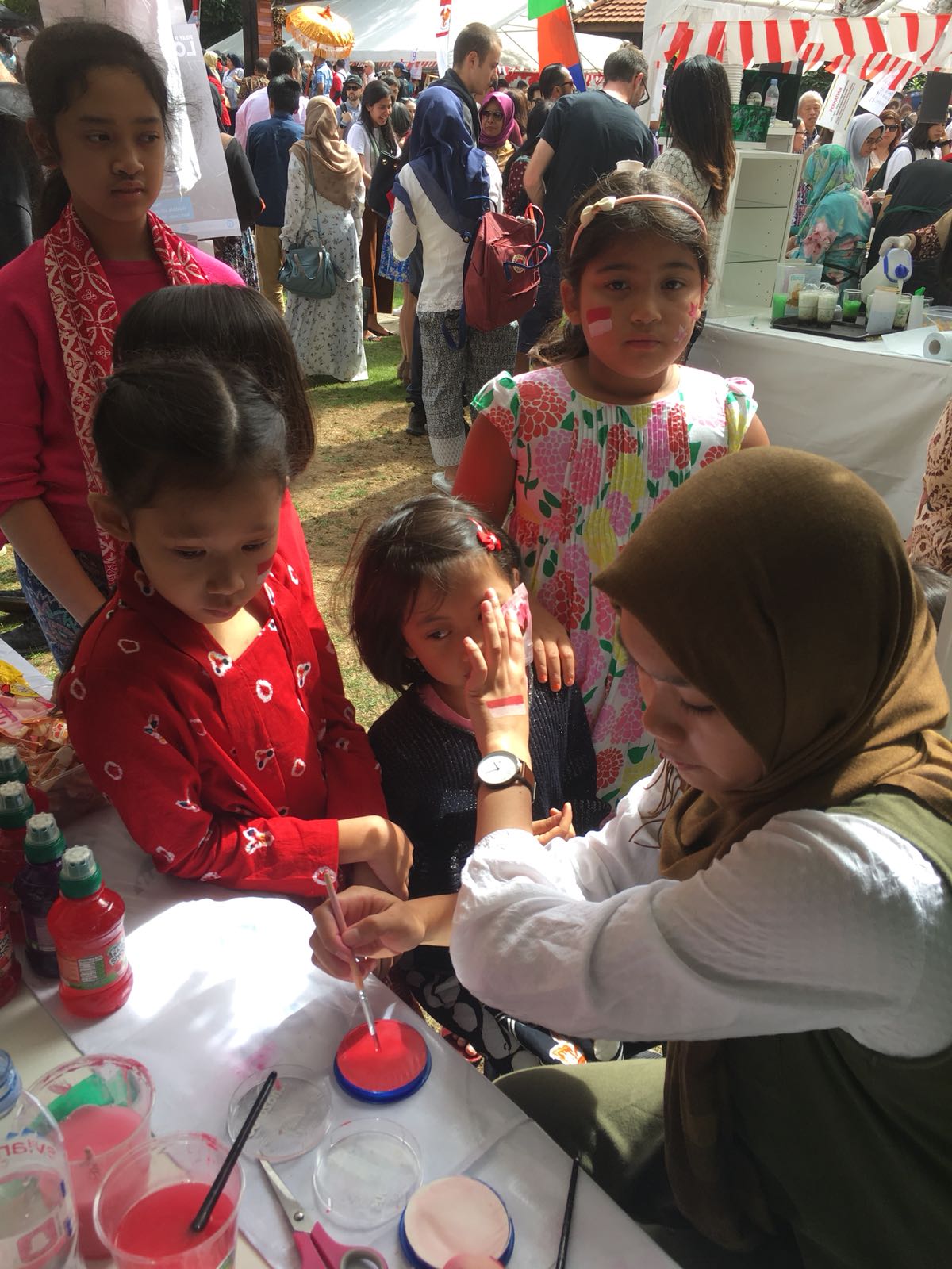 โ€œThe painting of the Garuda and the flag was chosen because the gathering was held to celebrate the 73rd anniversary of Indonesia’s independence,โ€ said HAIโ€™s treasurer Mrs. Nurmilah Nusbar. “It turns out that the face painting with the Garuda and the flag is very popular, not only among children but also adults,” Nurmilah said.